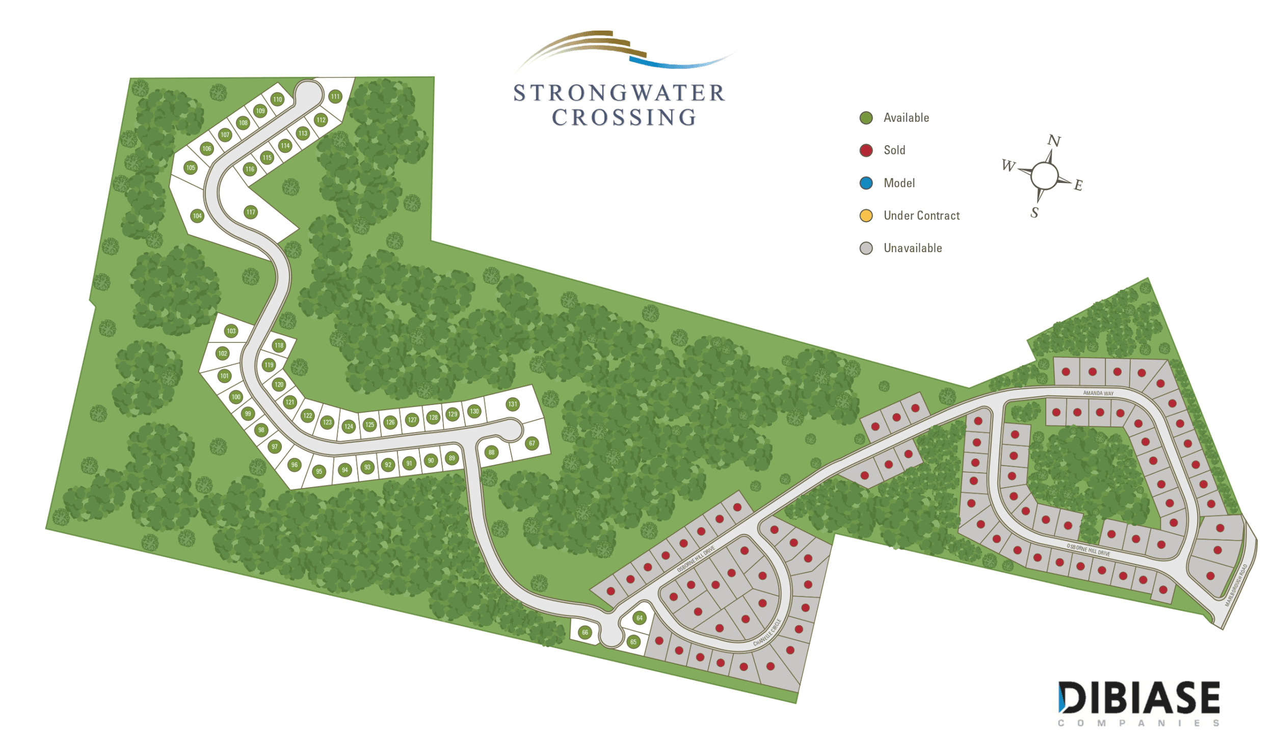 Why buy a home when you can have a neighborhood? The streets of Strongwater Crossing have a decidedly gentle feel with architecturally correct mailboxes punctuating the family-friendly five-foot wide tree lined sidewalks. The environment is naturally elegant and professionally landscaped with a warm and picturesque neighborhood entrance that says ‘Welcome’. And of course, with 90+ acres set aside for your pleasure, you will enjoy the meandering miles of lush trails and country paths for years to come. It all adds up to one thing: At Strongwater Crossing, living here is natural.